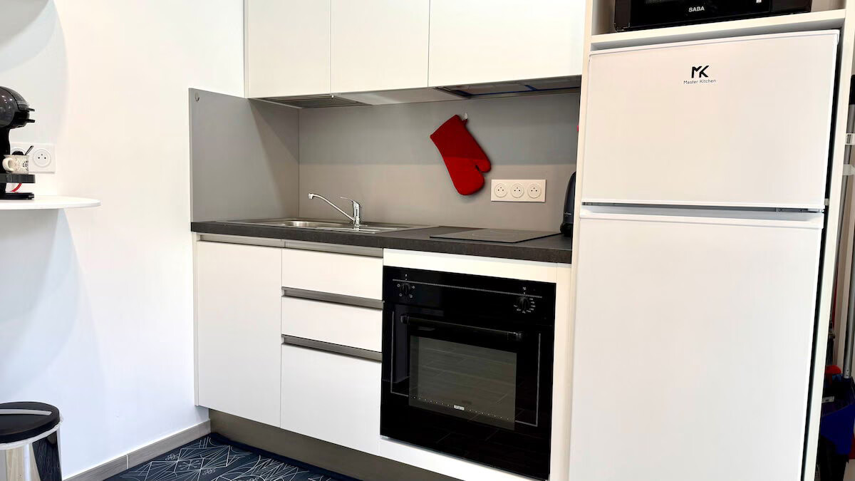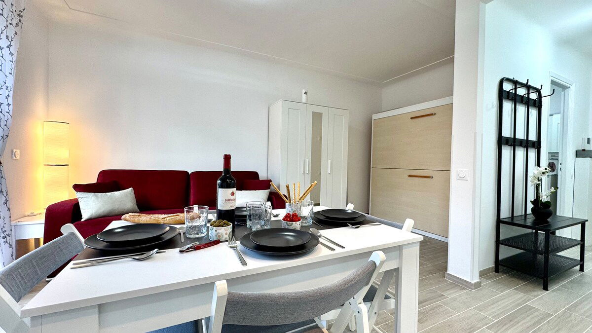 ✨Welcome to Cocoon✨ Discover this modern and bright studio, perfect for a family getaway in Menton. Recently renovated, it features a sofa bed and two foldable bunk beds, a fully equipped kitchen, and an elegant bathroom with an Italian-style shower. Enjoy a light-filled atmosphere thanks to the large windows. Located in a secure residence just steps away from shops and the beach, it promises a comfortable and unforgettable stay.