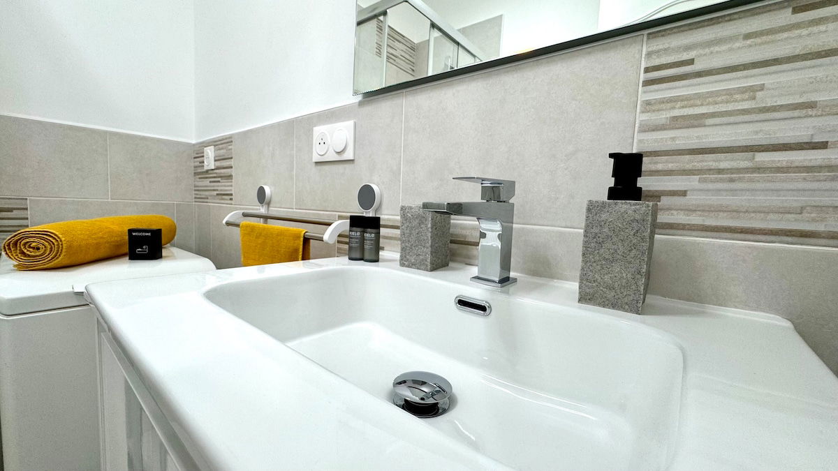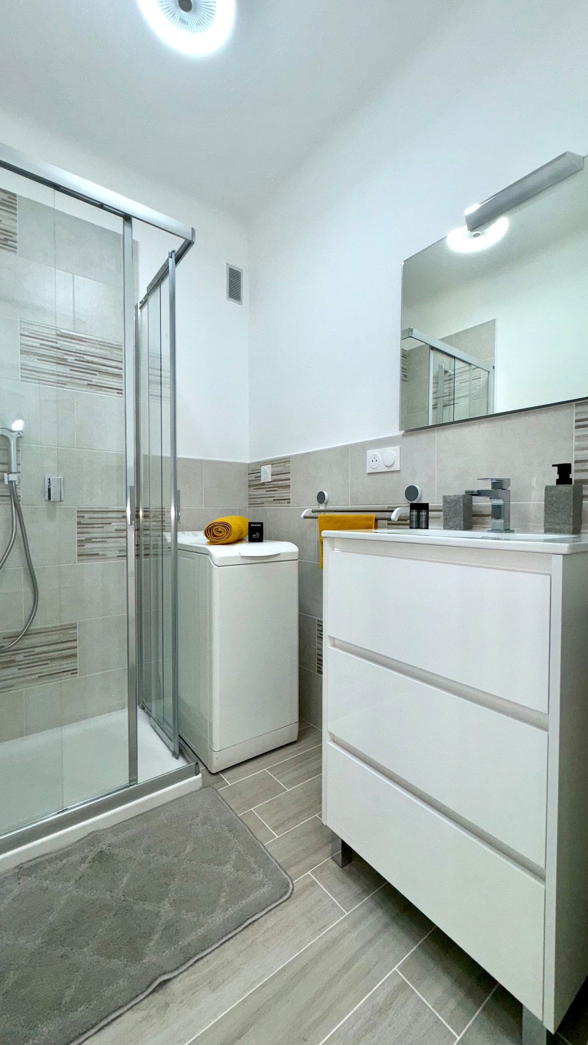→ Bathroom: Treat yourself to a moment of absolute relaxation in the elegant bathroom, featuring a refined Italian-style shower. The sleek and contemporary design creates a soothing atmosphere, perfect for unwinding.